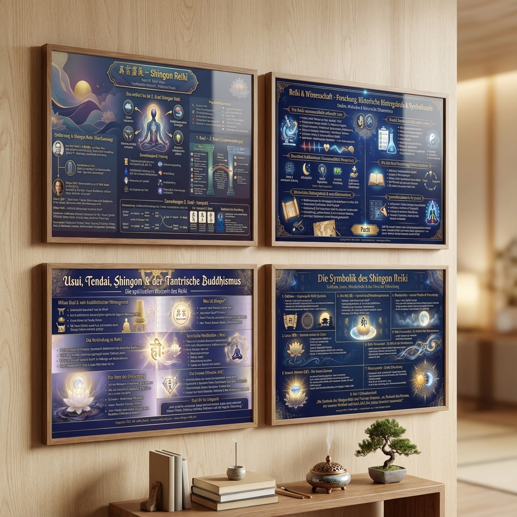 Diese Infografiken sind normalerweise Teil von Mark's Kursen und Büchern und zeigen dir die spirituellen Wurzeln des Reiki, die wissenschaftliche Perspektive, die tiefere Bedeutung der Symbole sowie den Weg zum Shingon Reiki 2. Grad.